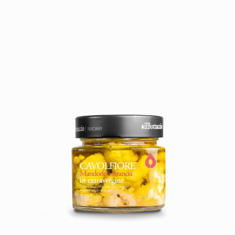 Il Cavolfiore Mandorle e Arancia in Extravergine IlBottaccio unisce la delicatezza del cavolfiore con la croccantezza delle mandorle e la freschezza dell’arancia, il tutto conservato in olio extravergine di oliva di alta qualità. Questa combinazione raffinata esalta i sapori naturali, ideale per arricchire antipasti, insalate o piatti gourmet con un tocco mediterraneo autentico e sofisticato.